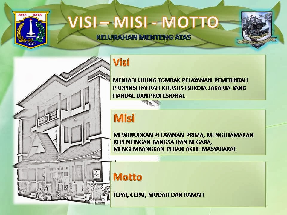 VISI :“MENJADI UJUNG TOMBAK PELAYANAN PEMERINTAH PROPINSI DAERAH KHUSUS IBUKOTA JAKARTA YANG HANDAL DAN PROFESIONAL”